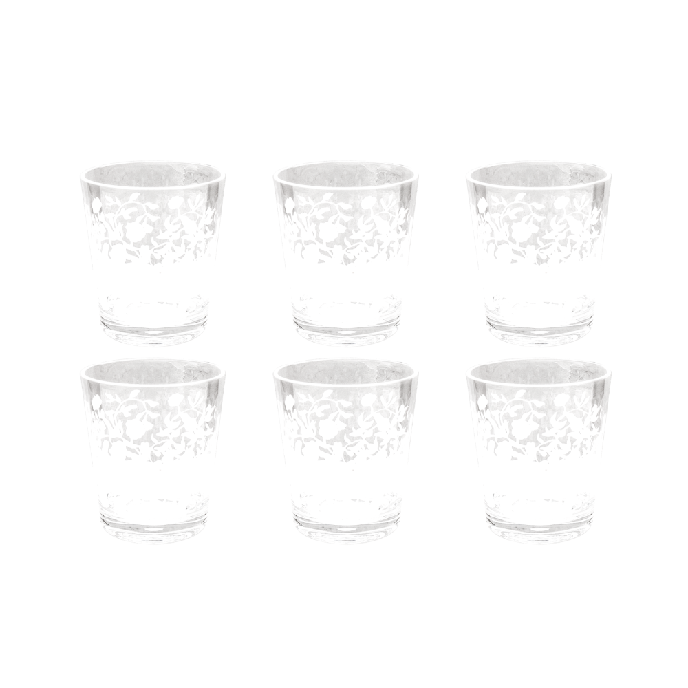 TarHong Vines Etch Clear Acrylic Double Old Fashioned Drinking Glass, Set of 6