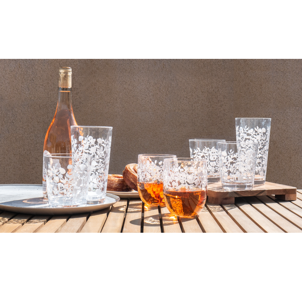 TarHong Vines Etch Clear Acrylic Stemless Drinking Glass, Set of 6