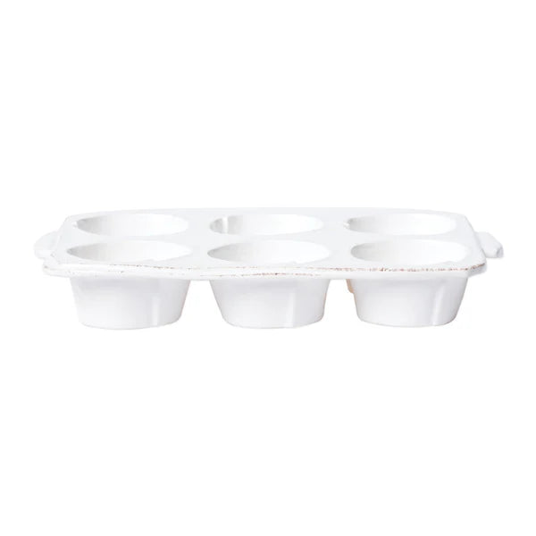 The Lastra White Muffin Tin is perfect for baking your mother’s favorite chocolate chip muffin recipe. Handcrafted in Italy from Italian stoneware, it features Lastra's signature rustic edges and refined simplicity, bringing charm to your kitchen.